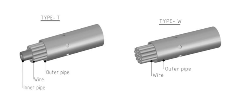 These lances have 2.5 mm diameter wires embedded longitudinally in the pipe. The lay out of these wires can be of the following type T o Wwith standard length of 3 m and coupling at one end.